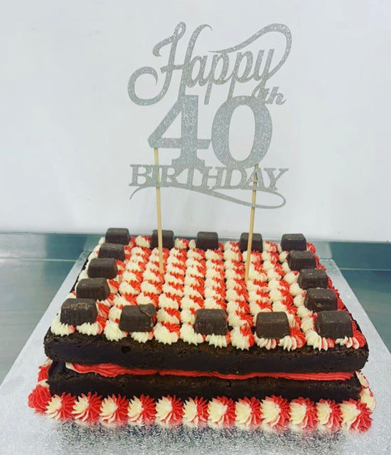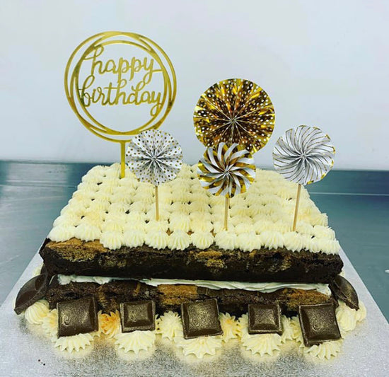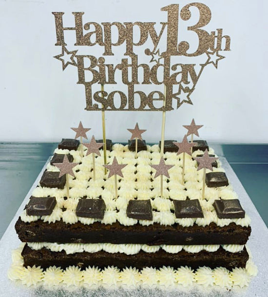 We offer a variety of flavours of brownies and blondies for the base of your cake, and can also include almost any kind of chocolates or other treats to make your cake that little bit more indulgent!